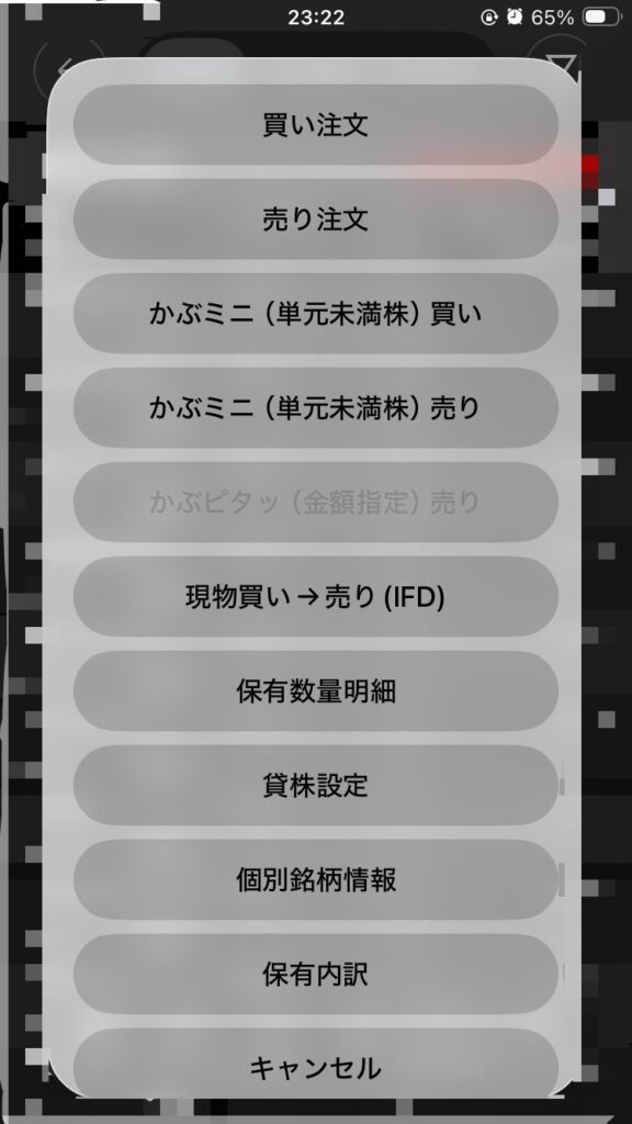 ▲ 銘柄タップ後のメニューから「貸株設定」を選ぶ